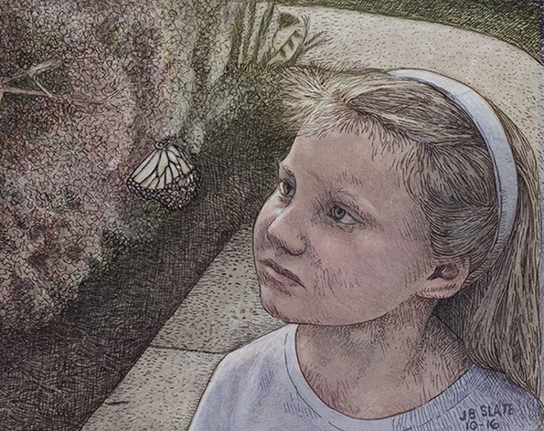 Drawing of Claire and Butterfly